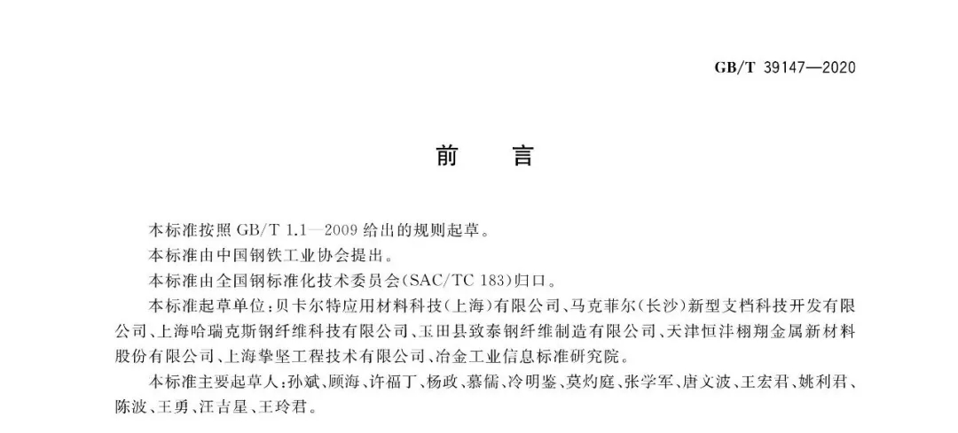 國家標準!混凝土用鋼纖維 GB/T 39147-2020
