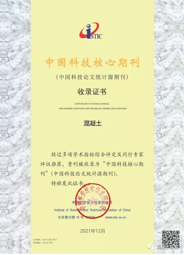 喜報|《混凝土》雜志再次被收錄“中國科技核心期刊”!