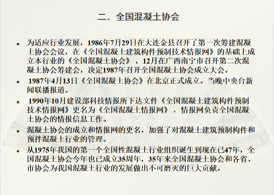 2022年是天津市混凝土行業協會成立三十周年,協會于3月3日舉辦活動開展座談交流會,會上特邀天津市混凝土行業協會名譽會長、顧問聞德榮先生作天津市混凝土行業三十年回顧的報告。讓我們一起回顧往昔歲月: