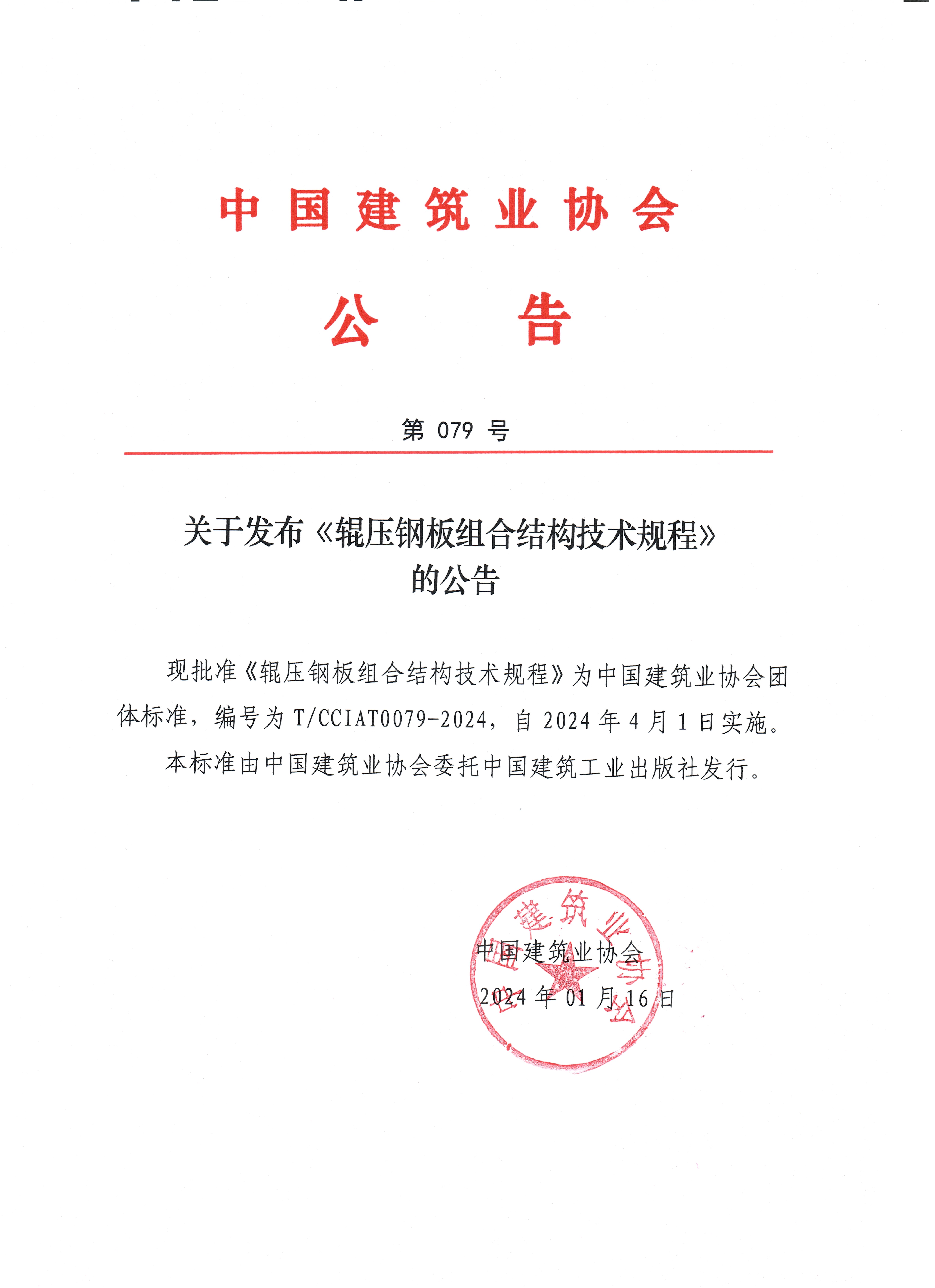 關于發布《輥壓鋼板組合結構技術規程》的公告