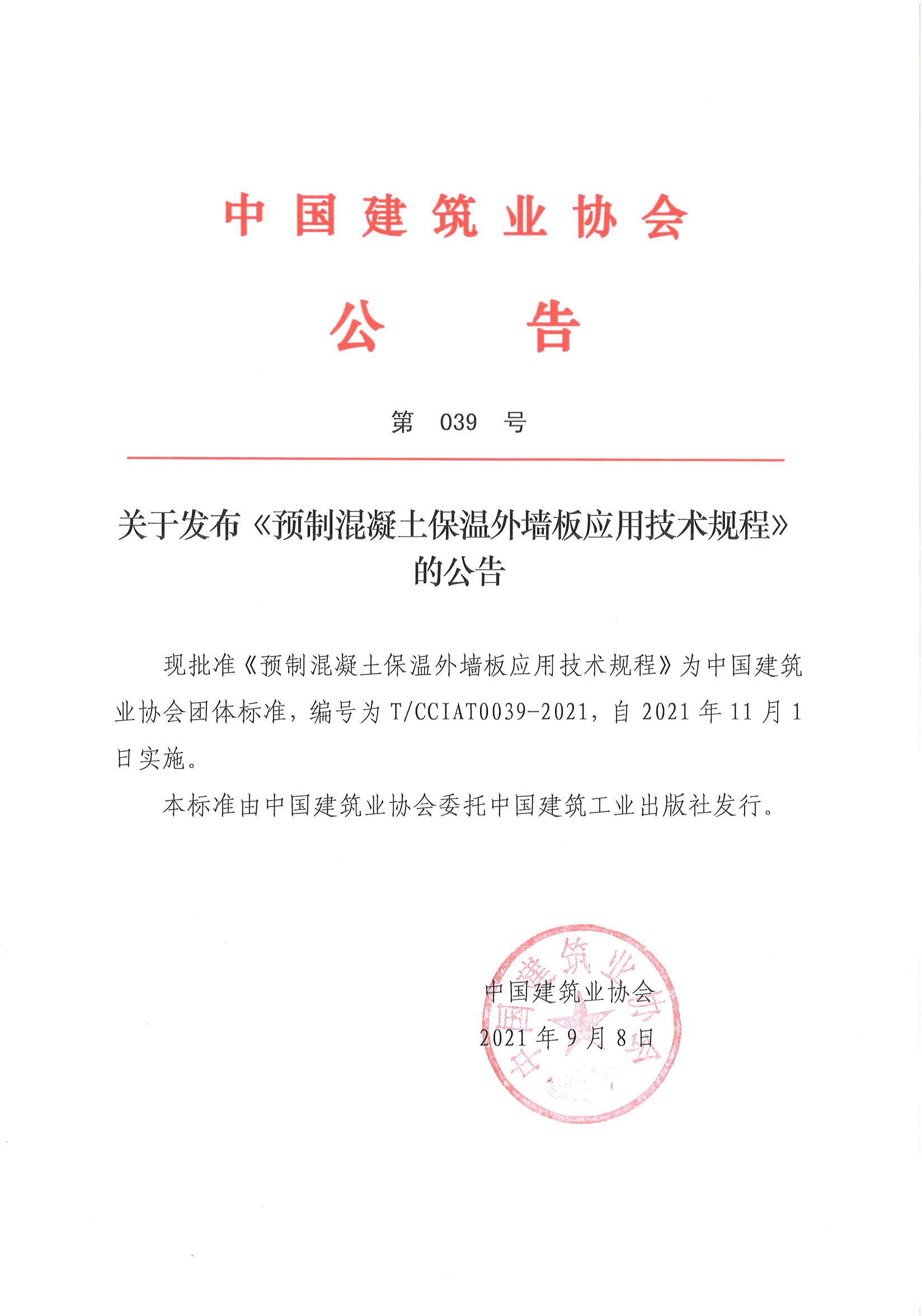 關于發布《預制混凝土保溫外墻板應用技術規程》的公告