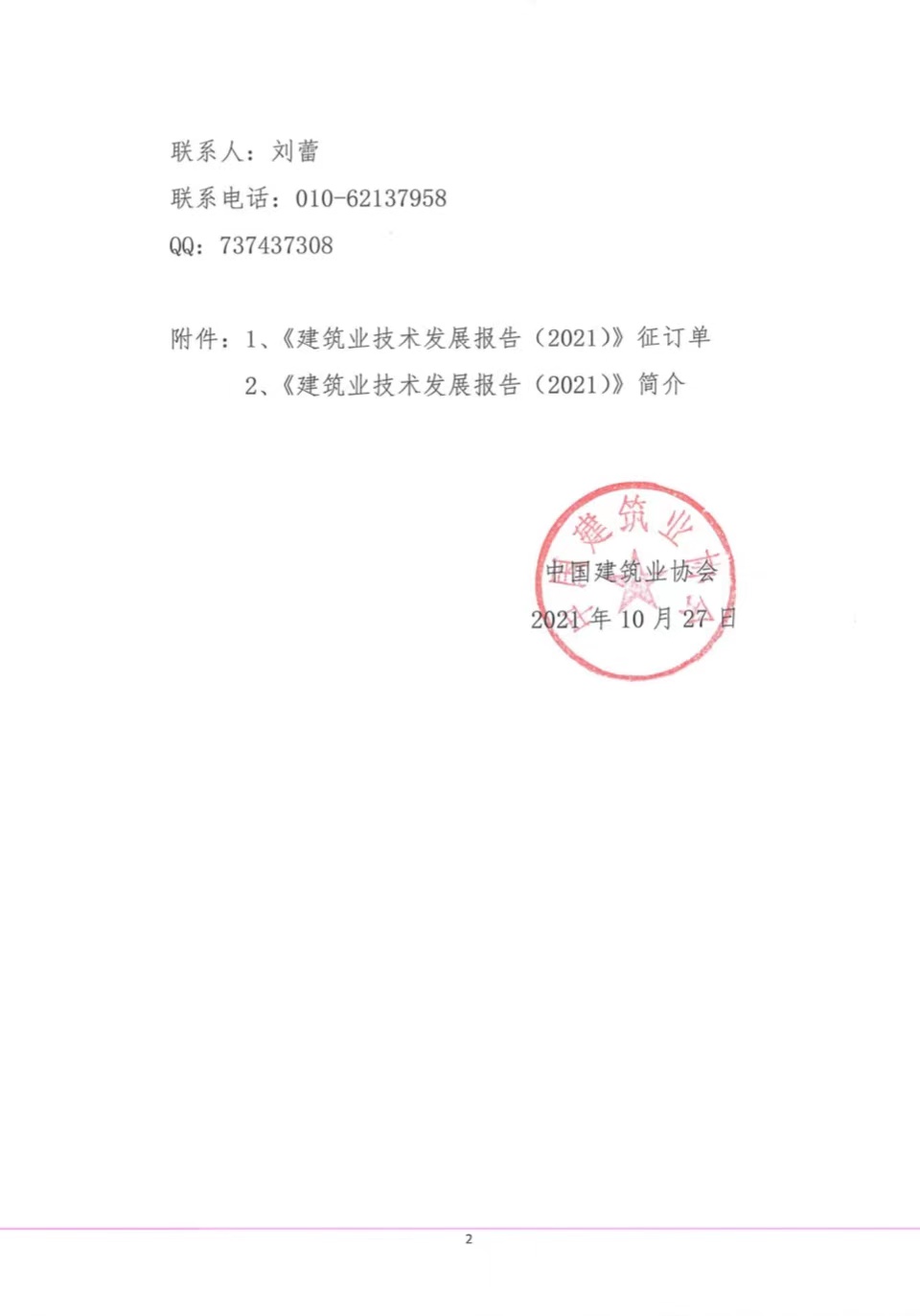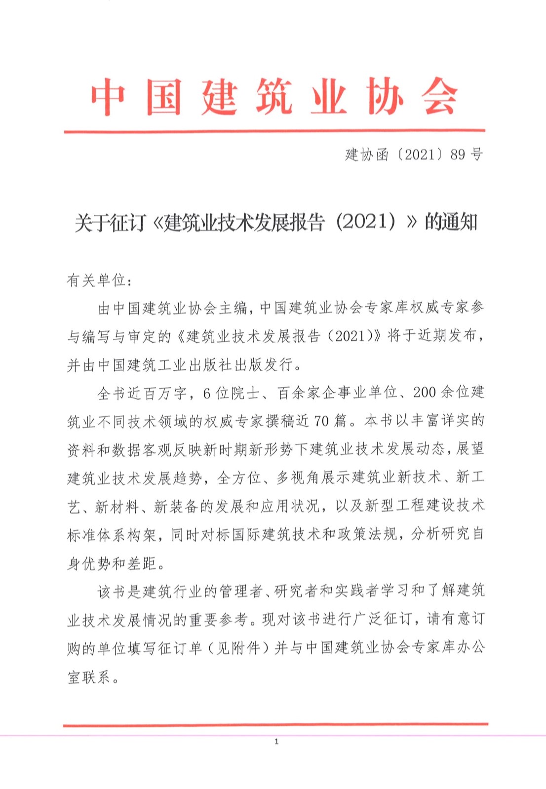 關于征訂《建筑業技術發展報告(2021)》的通知
