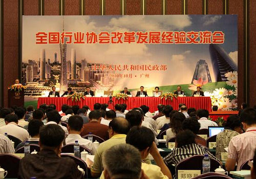 全國行業協會改革發展經驗交流會于10月10日在廣州召開,來自全國各地的登記管理機關、社會組織、部分行業協會以及相關研究機構的專家學者300多人參加了會議。民政部黨組書記、部長李立國,副部長姜力,廣東省委常委、副省長黃志恒,國務院國資委副主任黃淑和等領導出席會議。