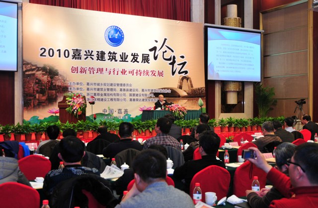 為總結交流建筑業發展經驗,進一步促進嘉興建筑業健康可持續發展,嘉興市建筑業行業協會于2010年12月17日在嘉善縣舉辦“2010·嘉興市建筑業工作會議暨建筑業發展論壇”。嘉興市人民政府副秘書長陳祖生致辭,中國建筑業協會協會副會長兼秘書長吳濤、住房和城鄉建設部干部學院院長張興野,江蘇省建筑市場管理協會會長汪士和做出席論壇并做專題演講。論壇由嘉興市建委主任陶金根主持。