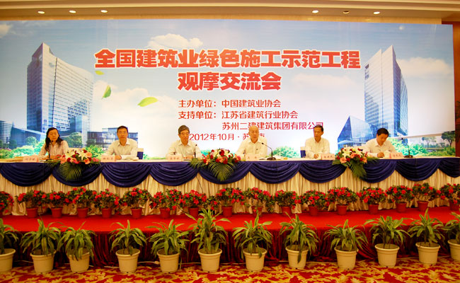 為進一步促進建筑業發展方式轉變,建設資源節約型、環境友好型社會,加強和促進建筑業節能減排與綠色施工,中國建筑業協會根據鄭一軍會長關于“協會要把加強和促進建筑節能減排和綠色施工作為今明兩年工作的重中之重,抓住不放,抓出成效”的指示,自2010年起,在行業內率先開展綠色施工示范工程創建活動。兩年來,已有兩批共93項工程被列為全國建筑業綠色施工示范工程。為交流創建全國建筑業綠色施工示范工程經驗,發揮示范工程的集聚輻射帶動作用, 10月11-12日,中國建筑業協會在蘇州舉辦了全國建筑業綠色施工示范工程觀摩交流會,并發布了《全國建筑業綠色施工示范工程申報與驗收指南》。中國建筑業協會副會長兼秘書長吳濤、江蘇省建筑行業協會會長高學斌出席會議并講話。會議由中建協副秘書長劉宇林主持。本次觀摩交流會得到了江蘇省建筑行業協會和蘇州二建建筑集團有限公司的大力支持,來自全國建筑業企業和相關行業協會的代表千余人參會,規模空前。