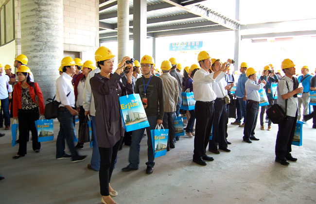 與會代表參觀第二批全國建筑業綠色施工示范工程——中新生態大廈土建總包工程