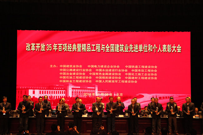 11月28日,中國建筑業協會在北京召開表彰大會,發布改革開放35年百項經典暨精品工程,表彰全國建筑業先進企業、優秀企業家、優秀總工程師和2014年全國建筑業質量管理誠信企業。原建設部副部長、中國建筑業協會會長鄭一軍,中國人民解放軍總后基建營房部副部長李建及13家建設行業協會的領導出席會議。會議由中國建筑業協會副會長徐義屏主持。
