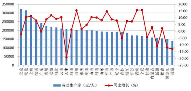 圖6 2018年上半年各地區(qū)按建筑業(yè)總產(chǎn)值計算的勞動生產(chǎn)率及增速