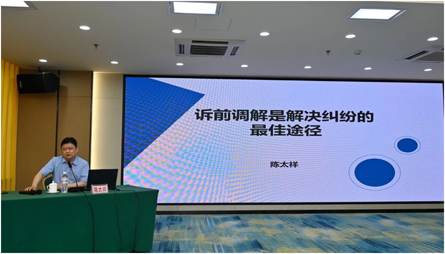 陳太祥作《訴前調解是解決糾紛的最佳途徑》專題講座。圍繞開展訴前調解的背景、開展訴調的措施及需要注意的問題進行了闡述和講解,強調了訴前調解的重要性。