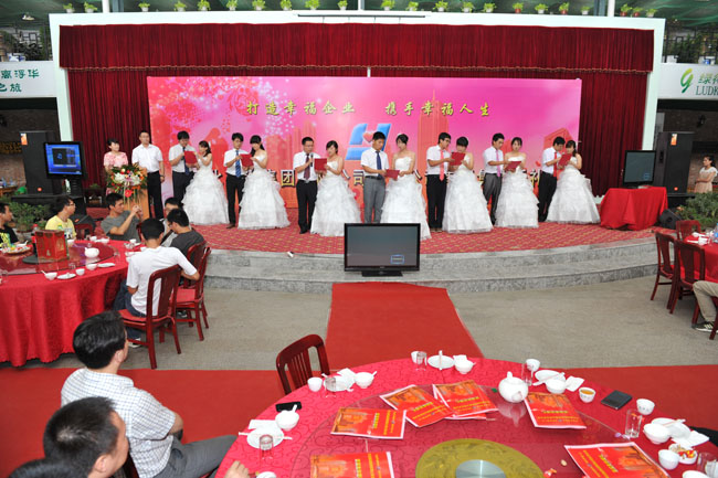 7月26日,河北建設集團北京公司在北京亦莊經濟技術開發區舉辦了一場特別的婚禮,婚禮的主角是來自該公司的7對80后新人。在現場同事好友的掌聲、喝彩聲、祝福聲交織的快樂交響曲中,7對新人攜手步入婚姻的殿堂,開始了對美滿人生的逐夢之旅。7對新人之一,該集團北京公司員工小封說,參加這樣的集體婚禮,時尚、低碳、經濟、省事,而且還有十分重要的紀念意義,給自己帶來幸福的同時,也讓企業廣大員工增添了許多的感動。