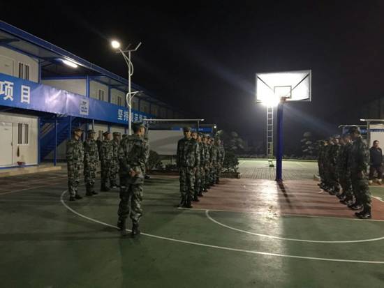 在嘹亮的軍號(hào)聲中,大家迅速起床,快速洗漱,整理寢室內(nèi)務(wù),穿上統(tǒng)一餓迷彩服,前往籃球場(chǎng)集合。這不是部隊(duì)也不是學(xué)校集合軍訓(xùn),而是中建三局二公司基礎(chǔ)設(shè)施公司107國(guó)道擴(kuò)改項(xiàng)目部開展為期15天軍事化訓(xùn)練的第一天。