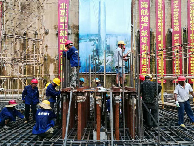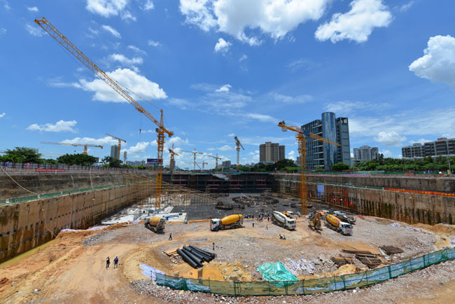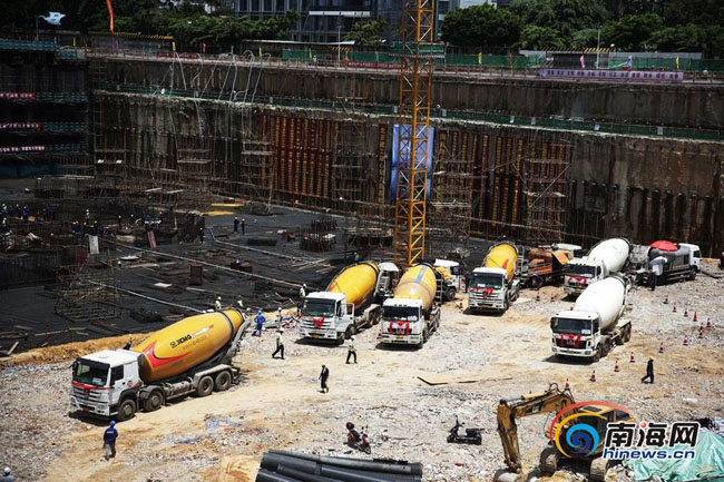 7月9日,由北京建工集團施工的428米的海南第一高樓——海口雙子塔•南塔工程塔樓筏板基礎單次9.6萬噸近4萬方混凝土澆筑施工任務拉開序幕。下午13時36分,海航地產總裁楊猛先生一聲令下,第一車混凝土通過溜槽奔馳而下,海口雙子塔•南塔大體積混凝土澆筑正式開始,全球六大傳媒集團之一Havas、央視9頻道、鳳凰網等多家媒體親臨現場實況轉播報道這項“超級工程”。