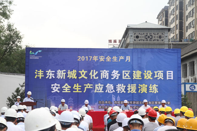6月30日上午九時(shí)許,灃東新城文化商務(wù)區(qū)建設(shè)項(xiàng)目安全生產(chǎn)應(yīng)急救援演練現(xiàn)場(chǎng)觀摩會(huì)在陜建九建集團(tuán)五公司東西里商業(yè)項(xiàng)目部正式拉開帷幕。