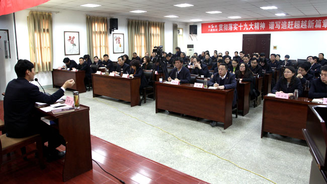 12月1日上午,陜建集團黨委常委、紀委書記韋賢忠來到陜建八建集團,向該集團領導班子、機關中層領導、基層單位主要領導和紀檢委員90余人宣講了黨的十九大精神。陜建八建集團黨委書記、董事長劉鵬慧主持會議并作部署講話。
