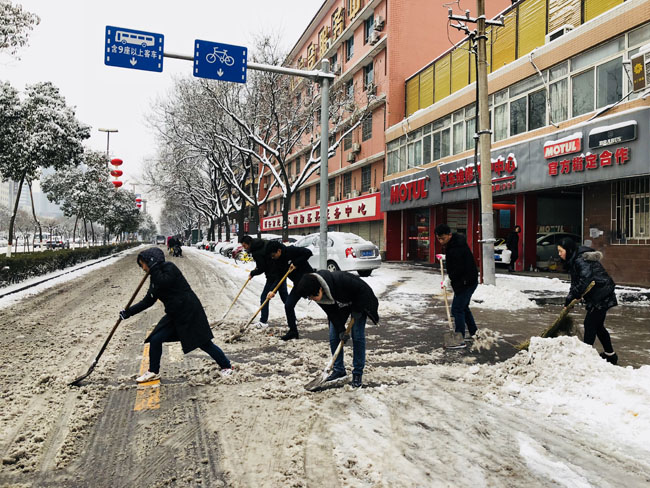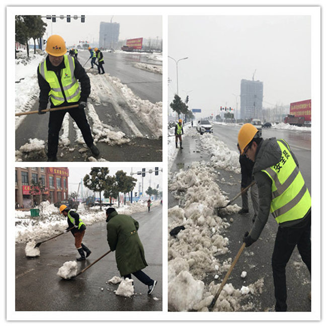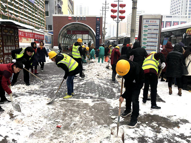 在西安,陜建八建集團(tuán)機(jī)關(guān)5個支部的黨員帶頭對企業(yè)駐地友誼西路附近的積雪進(jìn)行清掃,方便行人出行。陜建八建集團(tuán)恒基項目部組織15名青年職工帶著工具來胡家廟地鐵站,幫助環(huán)衛(wèi)工人將工地臨近地鐵口的積雪清理干凈,為出行的人們帶來方便。陜建八建集團(tuán)四公司、九公司、巖土公司組成的30名鏟雪志愿者團(tuán)隊走上街頭,大家手中拿著鐵鍬、掃把等工具,對南二環(huán)輔道及人行道上鏟雪,大家相互配合、齊心協(xié)力,揮舞著鐵鍬和掃帚,你鏟我掃,為行人們“鏟出”一份平安。