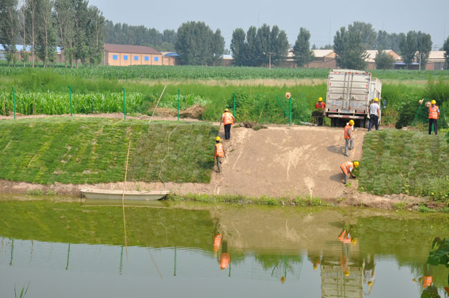 此外,項目人員會根據不同的坑塘進行分類生態修復治理,恢復原有生態系統,有的種植適宜本地生長的蘆葦、荷花等植物,有的護坡種植草皮,以達到穩固坑塘坡面、凈化水質、修復水體生態和美化景觀等目的。