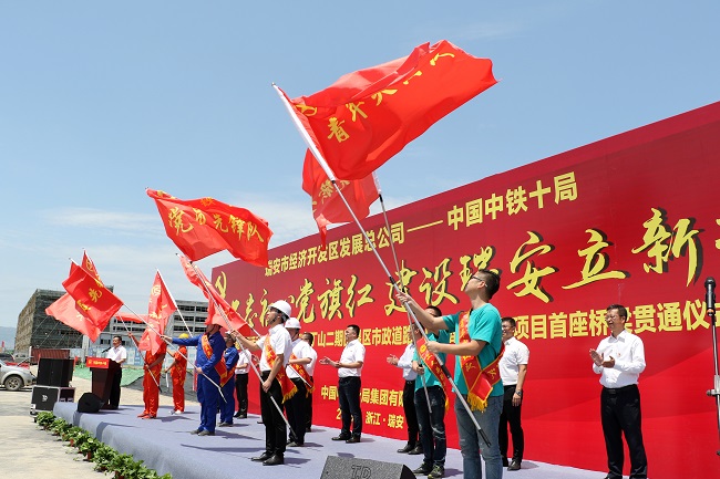 近日,瑞安市經濟開發區發展總公司——中國中鐵十局“不忘初心黨旗紅 建設瑞安立新功”主題黨日活動暨中鐵十局瑞安市丁山二期圍墾區市政道路及附屬配套PPP項目首座橋梁貫通儀式舉行。來自瑞安市經濟開發區、經濟開發區發展總公司、中鐵十局、中鐵十局投資公司、中鐵十局五公司以及項目公司、項目部的90余名黨員、工人、團員代表參加活動,共同慶祝該工程首座橋梁順利貫通。