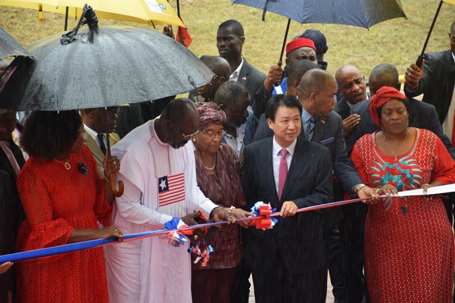 利比里亞總統(tǒng)維阿、副總統(tǒng)泰勒,參議院參議長羅伯特、前總統(tǒng)瑟利夫,中國政府中非合作論壇事務(wù)大使周欲曉、中國駐利比里亞大使付吉軍等出席活動。利政府各部門負(fù)責(zé)人、社會各界代表,在利中資企業(yè)代表500人參加了項(xiàng)目啟用儀式。