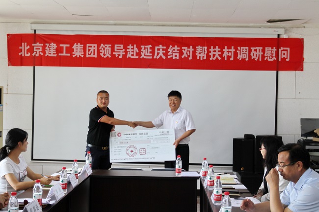 樊軍一行首先來到下垙村村委會會議室就做好精準幫扶攻堅工作與區、鄉和村“兩委”領導進行了座談交流。結對幫扶村黨支部書記兼村委主任郭磊介紹了下垙村的低收入戶、農村經濟發展、支部建設等基本情況;四建公司派駐下垙村的“第一書記”王曉峰匯報了工作履職情況及下一步工作計劃;四建公司黨委副書記、工會主席李長曉匯報了四建公司黨委精準幫扶工作開展情況及下一步工作計劃;四建公司黨委書記、董事長孫振泉代表四建公司向下垙村捐贈了10萬元幫扶資金用于村民活動廣場回填雨水沖刷溝壑,平整鋪裝、圍立護欄,栽植花草等施工項目建設。隨后,北京建工集團領導就做好精準幫扶攻堅工作,分別與區、鄉和村“兩委”領導進行了溝通交流,通過了解當地可利用資源和幫扶需求,探討在有利于發揮企業優勢的基礎上可能的幫扶措施。樊軍在交流發言中指出,積極參加“一企一村”精準幫扶工作,是北京建工作為首都國企的使命和擔當,是對習近平總書記“小康路上一個也不能少”的具體落實。在總結已取得經驗的基礎上,北京建工將繼續秉承“幫扶先扶志,扶志是根本”的原則,聚焦聚力幫扶工作的重點難點問題,不斷加大與村、鄉、區的協同聯動,持續推動脫低成果鞏固提升。要充分將引資和引智結合起來,將廣大村民敢闖敢干的奮斗精神激發出來,努力探索形成符合該村實際的積極發展模式,走出一條脫低致富的幸福路。“一朝結對,永久結緣”,北京建工將充分發揮綠色智慧全產業鏈優勢助力延慶建設,已實際行動交上一份滿意的答卷。