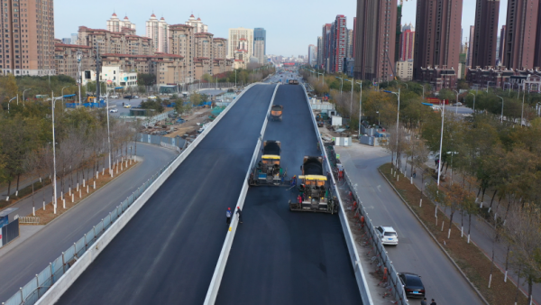 金陽大街跨線橋工程是整個南部快速路第一個完成瀝青攤鋪的工程,對整個工程乃至沈陽南部快速路工程來說都是一個重要節(jié)點。瀝青路面攤鋪完成后,將進行路面伸縮縫安裝、交通標(biāo)線施劃、隔音屏安裝等后續(xù)工作,預(yù)計在年底前金陽大街跨線橋工程將具備通車條件。