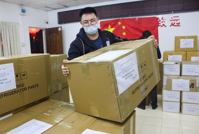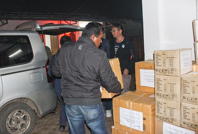 孟加拉N8改擴建項目7標工作人員搬運準備支援武漢的醫療物資 (2) 馬洪強 攝