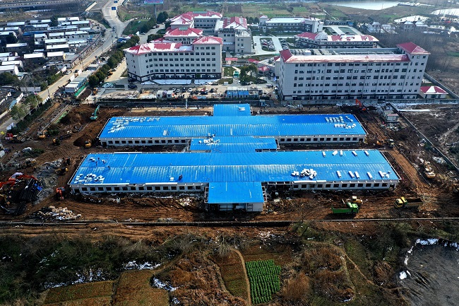 2月8日,華發員工毫不停歇地投入了二期建設。他們主要負責集裝箱箱體改造,內部的集成衛生間、門、傳遞窗和地面鋪設,公共區域以及工作區、診療區的吊頂裝飾;要求2月18日交付。