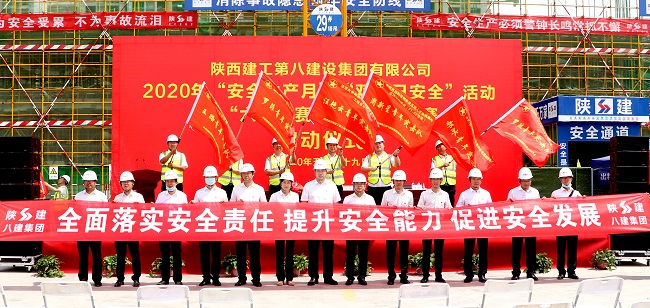 5月29日,陜建八建集團2020年“安全生產月”“雙百日安全”活動暨“六比六賽”主題勞動競賽啟動儀式在西安國際港務區新筑新城二期項目隆重舉行。集團黨委副書記、總經理王勛宣布啟動儀式。集團副總經理帖華作動員講話。集團生產管理部部長劉彥主持儀式。