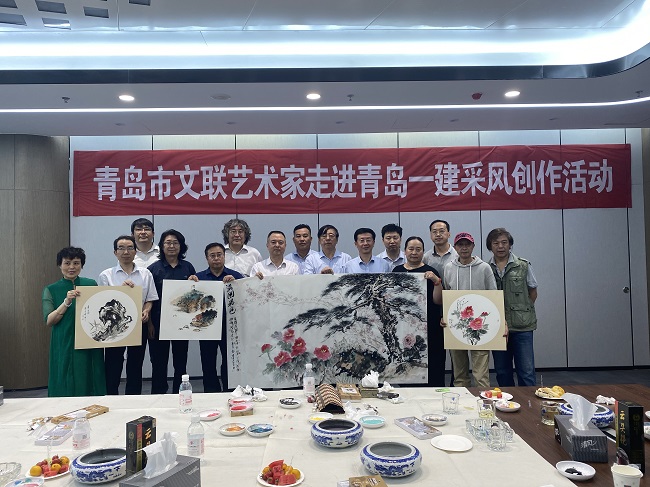 根據市委市政府《關于弘揚優秀企業家精神支持企業家創新創業創造的若干規定(試行)》精神,6月16日,在青島市文聯黨組書記、副主席魏勝吉的帶領下,青島市文聯黨組成員、副主席徐健;青島市文聯協會工作部部長、市影視家協會副主席王玉玲;山東省書協副主席、市書協主席范國強 ;青島市書協常務副主席兼秘書長、青島畫院副院長郭強;青島市美協副主席、青島市女書畫家協會主席戴淑娟等一行12人,走進青島一建集團有限公司國際院士港項目進行采風創作。集團公司黨委書記、名譽董事長尚延青;集團公司原副董事長、顧問賈元平等5人參加此次活動。