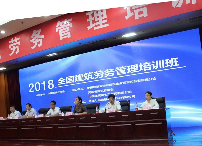 2018年9月12日至13日,全國建筑勞務管理培訓班在鄭州舉辦。 開班儀式由中國建筑業協會建筑企業經營和勞務管理分會副會長兼秘書長邢作國主持,中建七局有限公司副總經理史先剛、河南省建筑業協會常務副會長兼秘書長李娟分別致辭。