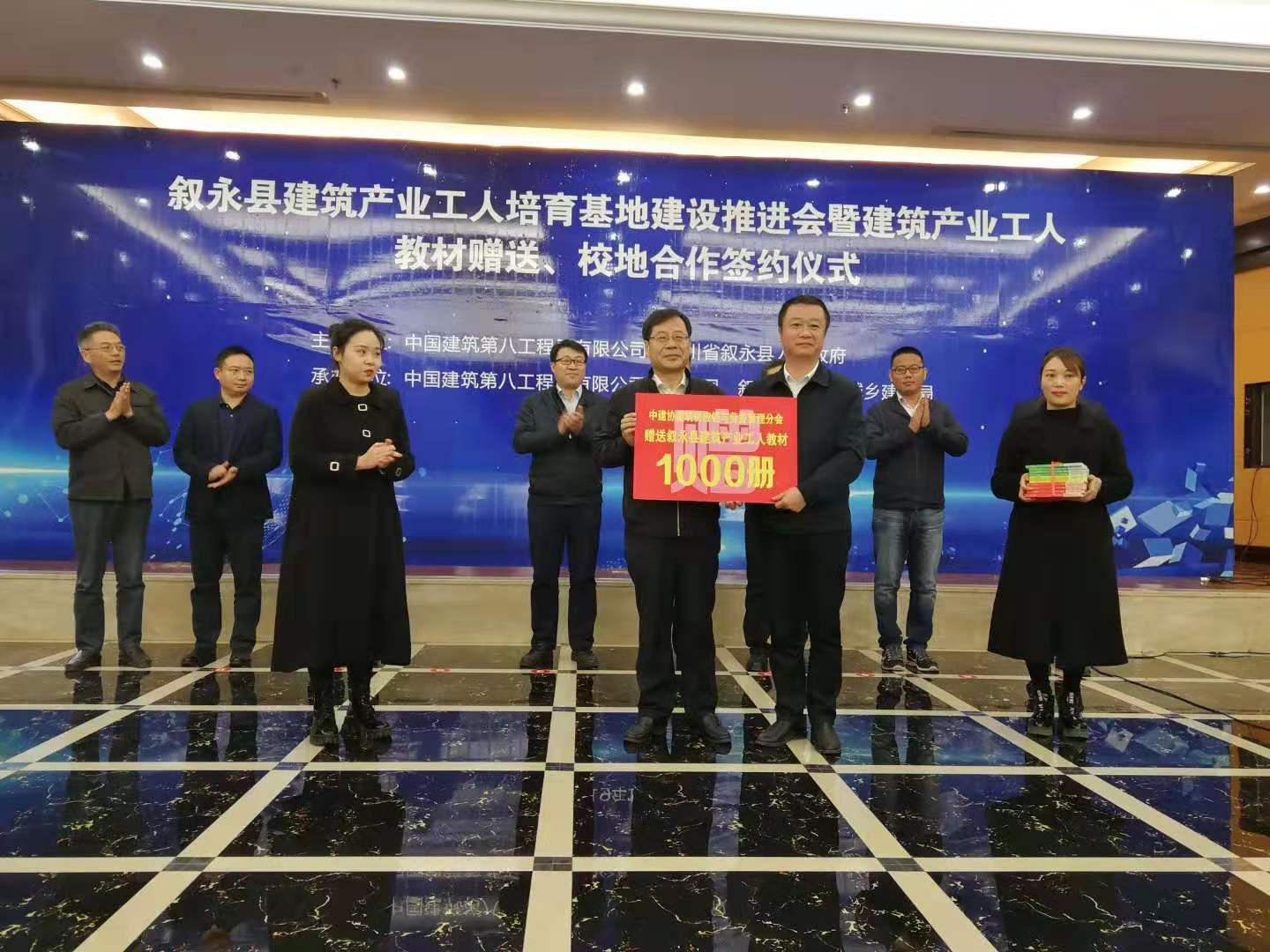 會上,中國建筑業(yè)協(xié)會建筑供應鏈與勞務管理分會副會長兼秘書長邢作國代表協(xié)會向敘永縣贈送砌筑工、鋼筋工、測量工3套建筑工人培訓教材共1000冊,用于敘永縣建筑工人培訓,助力敘永縣建筑工人培育基地建設的順利推進。邢作國表示,培育建筑產業(yè)工人隊伍是一項長期而又艱巨的任務,需要行業(yè)上下社會各界的共同努力,中國建筑業(yè)協(xié)會愿意同大家一道為培育新時期建筑產業(yè)工人隊伍、為行業(yè)的改革發(fā)展盡協(xié)會的一份綿薄之力。
