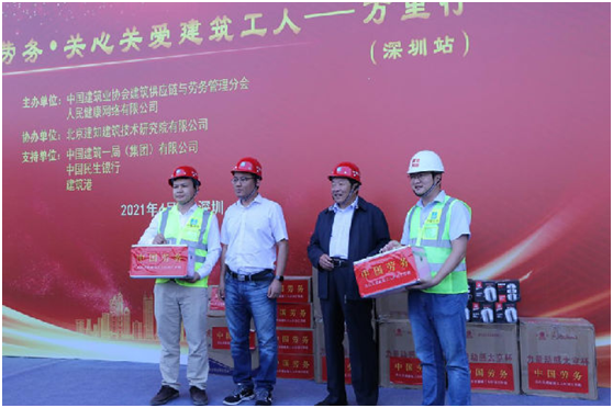 4月22日,由中國建筑業(yè)協(xié)會建筑供應鏈與勞務管理分會和人民健康網共同發(fā)起的“關心關愛建筑工人萬里行”走進中建一局集團深圳深灣匯云中心項目,為建筑工人兄弟送來“健康科普、技能提升、法律援助、紅色驛站、安全培訓、文化娛樂”等六項關愛服務。活動現(xiàn)場,住房和城鄉(xiāng)建設部建筑市場監(jiān)管司、中國建筑業(yè)協(xié)會、中國建設工程造價協(xié)會、各省市建筑業(yè)協(xié)會、深圳市住房和建設局以及中國建筑一局(集團)有限公司等有關負責人,對活動的內容和措施進行調研與指導,并把醫(yī)藥物資、關愛慰問品送到項目部和建筑工人手中。