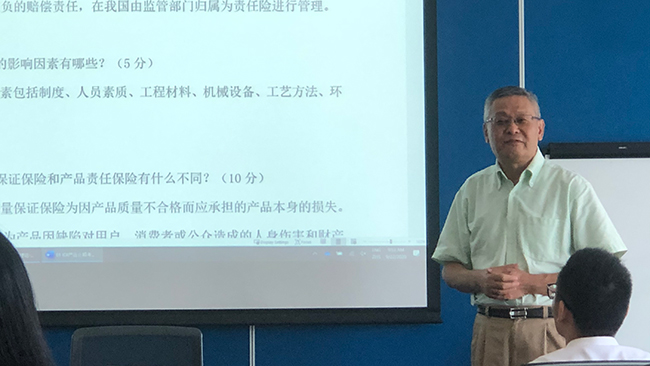培訓首日上午,法國再保險公司北京分公司CEO于巍東作了專題講座,分別從風險與保險、保險分類、IDI產品起源與發展、IDI產品定義及特點、工程質量風險TIS五個版塊對工程質量潛在缺陷保險進行介紹。在交流環節,學員們熱情高漲,踴躍發言,立足崗位實際,分享了經驗與心得。